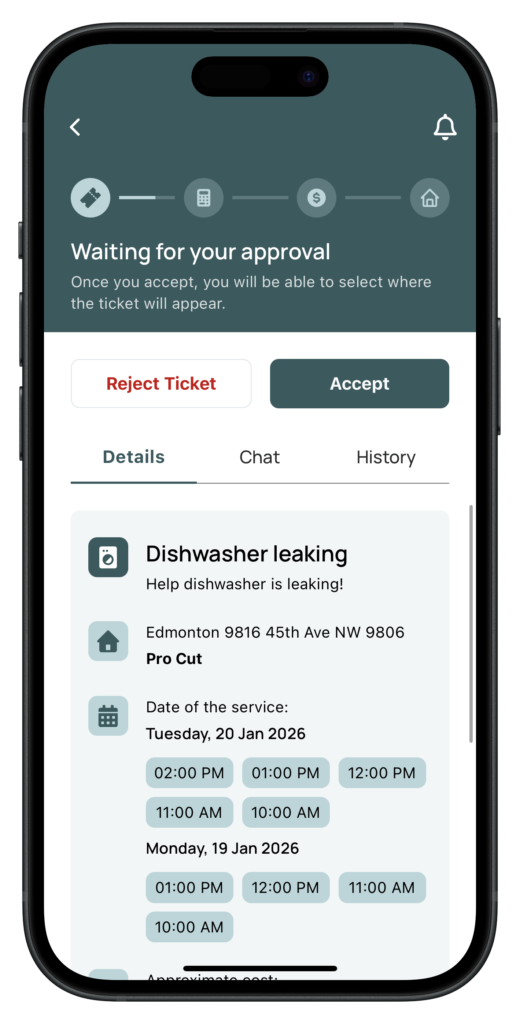 Review quotes, confirm schedules between the contractor and your tenant, and keep everyone connected and updated in real-time.